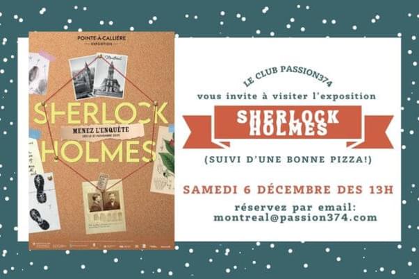 Le samedi 6 décembre, nous vous donnons rendez-vous au musée Pointe-à-Callière pour visiter l’exposition Sherlock Holmes. Nous nous y retrouverons à 13h, vous pourrez acheter vos billets sur place. Après la visite, nous irons prendre une bouchée et continuer à discuter à la Pizzeria No900 (sur la rue McGill, à environ 10 minutes du musée).