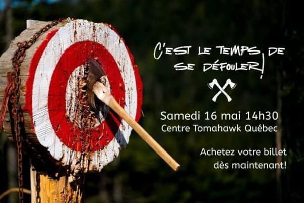 Dans le cadre de la thématique annuelle de Passion374-Québec sur la gestion des émotions, nous vous invitons à une activité qui sort de l’ordinaire : le lancer de hache. Venez transformer votre énergie (et peut-être votre petite colère intérieure) en précision et en plaisir!