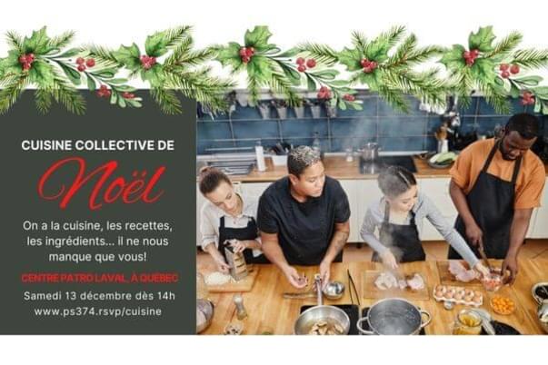 Le samedi 13 décembre, les solos de la Capitale nationale ont rendez-vous au centre communautaire Patro Laval, à Québec. Là, dans la grande cuisine, nous allons préparer plusieurs délicieux plats pour les fêtes. Nous allons commencer à 14h, et nous terminerons par un souper style cocktail dinatoire, tous ensemble au même endroit. Vous pouvez apporter vos boissons pour le souper, mais s’il vous plaît, seulement des boissons non-alcoolisées.