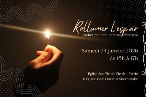 Nous nous retrouverons à l’église Souffle de Vie de l’Estrie à 15h. Après un court message, nous discuterons du sujet en petits groupes de célibataires chrétiens. Une belle discussion accompagnée de boissons chaudes et de petites gourmandises. Notre atelier devrait se terminer vers 17h.